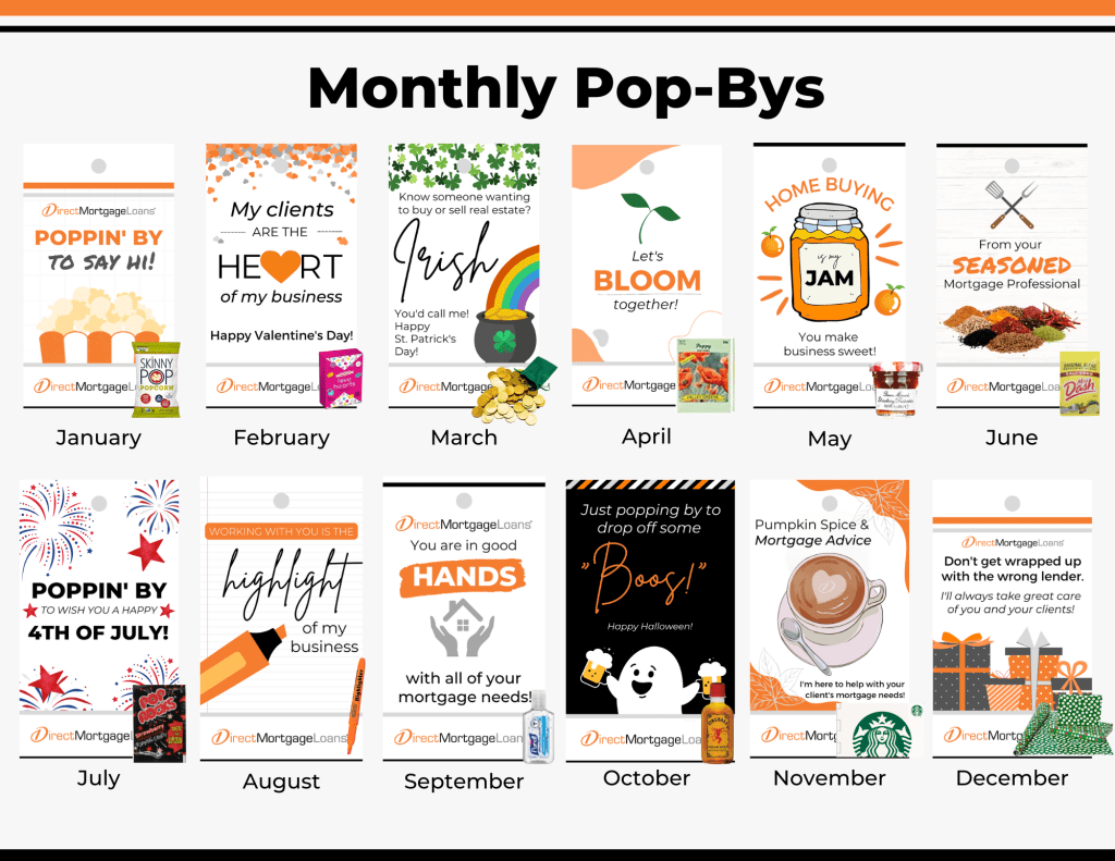 I conceptualized, designed, and produced customizable inexpensive monthly pop-by’s for our loan officers to use as a marketing tool to work with local real estate agents and promote their business. Loan officers and/or branches can request the month and quantity of tags they’d like and provide instructions on who the tags would be branded for. Additionally, I would fulfill the requests and provide the artwork to be printed.